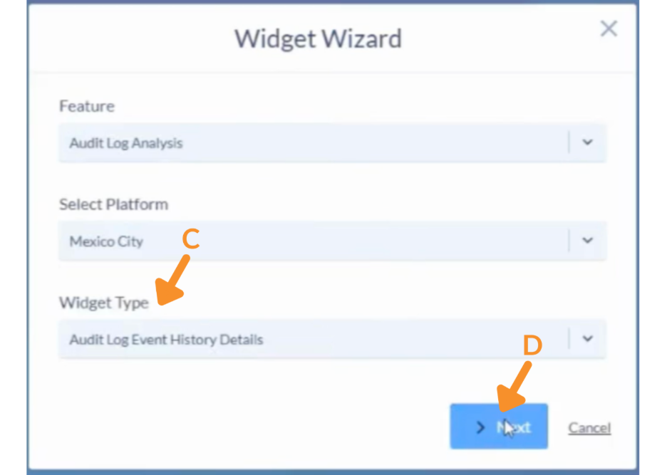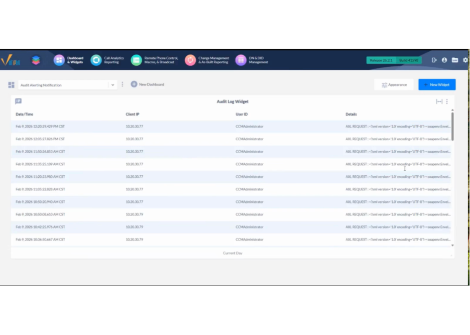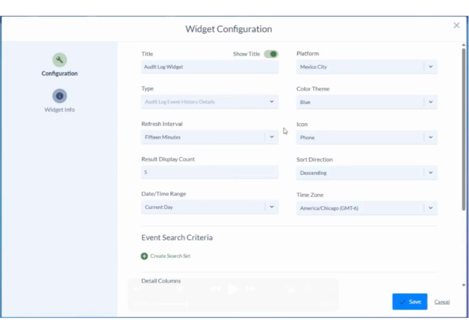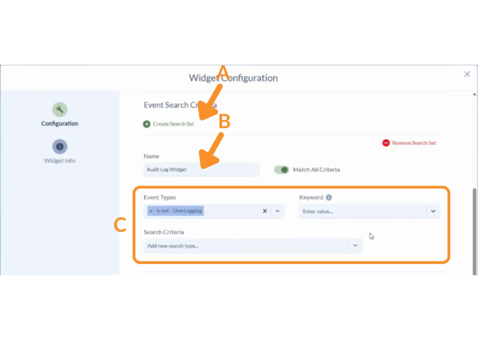 - Widget Name: Enter a descriptive name (e.g., Audit Log – CCM Administrator Activity).