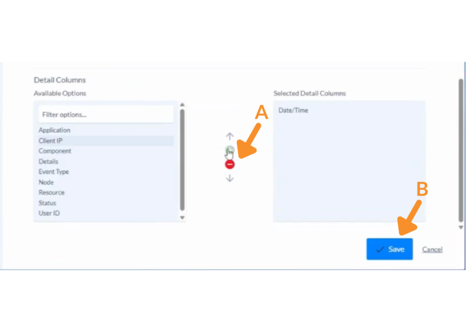 A. Choose which data fields will appear in the widget. Click the green + to add the detail column or the red – to remove it.