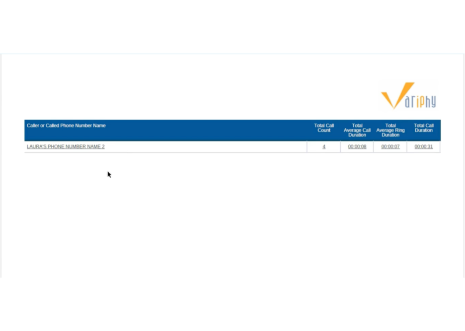 - Caller or Called Phone Number Name: Summarizes all calls tied to the phone name.