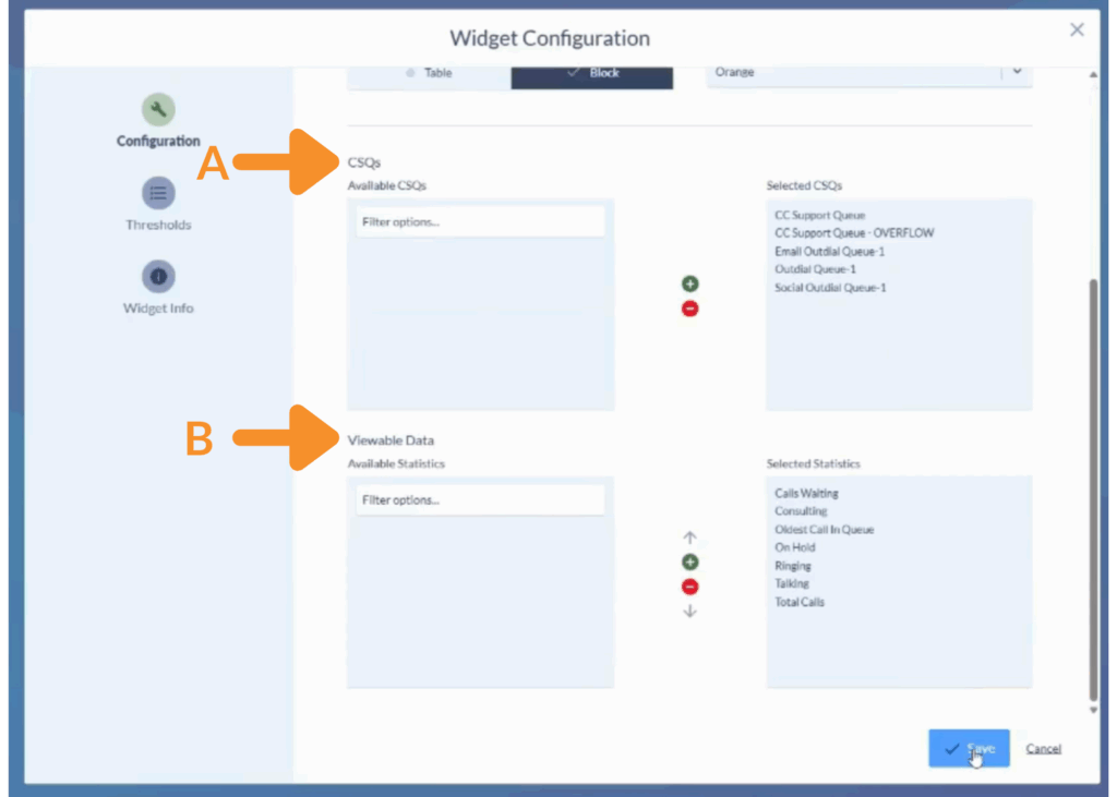 B. Choose metrics in Viewable Data such as Calls Waiting, On Hold, and Total Calls.